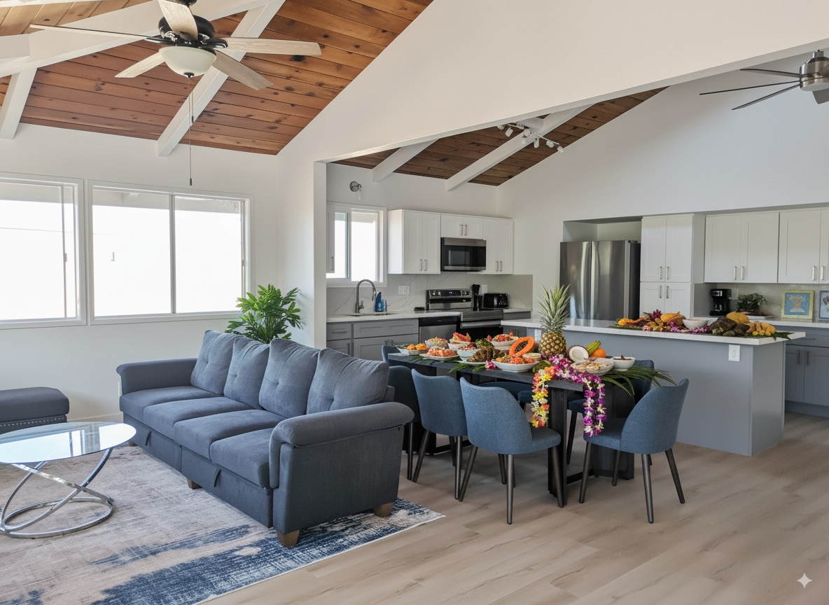 To prenočišče s 3 spalnicami in 2 kopalnicama, ki se nahaja v bujni oazi Kohanaiki, vas čaka kot idealno havajsko prenočišče. Ponuja prostorno dnevno sobo in vrhunsko kuhinjo za nepozabna družinska srečanja. Obdani s tropskim zelenjem imate oceanske razglede in osupljive sončne zahode iz udobja popolnoma zaščitenega lanaija. S priročnim dostopom do središča mesta Kona (6 mi), letališča (7,5 mi) in nedotaknjenih plaž na severnem koncu, kot je park Kua Bay Beach (10 mi).