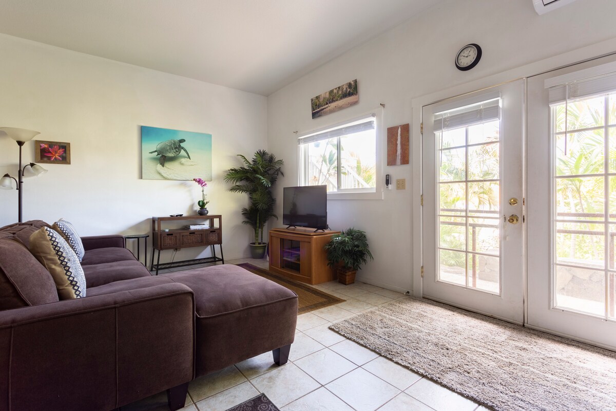 Ta zasebni studio, ki je od mednarodnega letališča Kona oddaljen le 10 minut, je popoln začetek vaše pustolovščine na otoku Big Island. Prostor je svetel in zračen, francoska vrata, ki se odpirajo na verando, pa poskrbijo za še več prostora. Na voljo so omara, zasebni pralni in sušilni stroj, osnovna oprema, 65-palčni pametni televizor in vtičnice USB. Na voljo sta zakonska postelja (Queen) in udoben kavč. Dovoljenje za kratkotrajno bivanje TA-018-066-6368-01