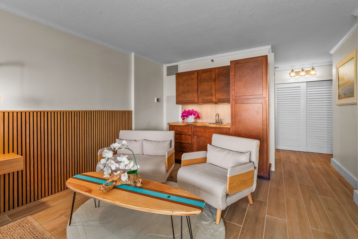 Razkošno letovišče Marriott Vacation Club. Bivajte v čudovitem salonu s pogledom na ocean s kuhinjsko nišo. Soba ima posteljo Queen Murphy. Preprosto pospravite posteljo in si privoščite lep življenjski prostor za podnevi. Blizu neverjetnih pohodov. Vključuje brezplačen letališki prevoz in parkiranje. Restavracije v namestitvi. Cene so manjše od POLOVICE ZNESKA, ki bi jih plačali neposredno pri hotelu. Masažne kadi, bazeni, dolga pot vzdolž plaže. Lahko mi pošljete sporočilo za bivanje na isti dan, jaz pa bom preveril razpoložljivost