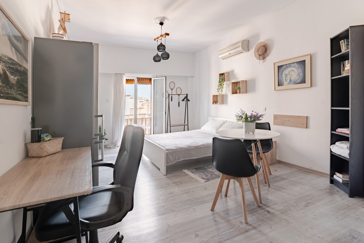 Enjoy a stylish experience in this centrally-located condo built in 2021, with shared pool. Only 12 minutes away from Acropolis (4km) & Syntagma Square (4.5 km). 10-15 min to Bolivar Beach (10km) & Piraeus Port (6.7km). Close to markets, shopping area, and restaurants. Green Metro line, bus, and taxi are minutes away. Big King size bed with comfortable mattress, and a comfy pull out couch. Fully equipped apartment, with a big balcony , and 65’ Tv. Book your travels with me.