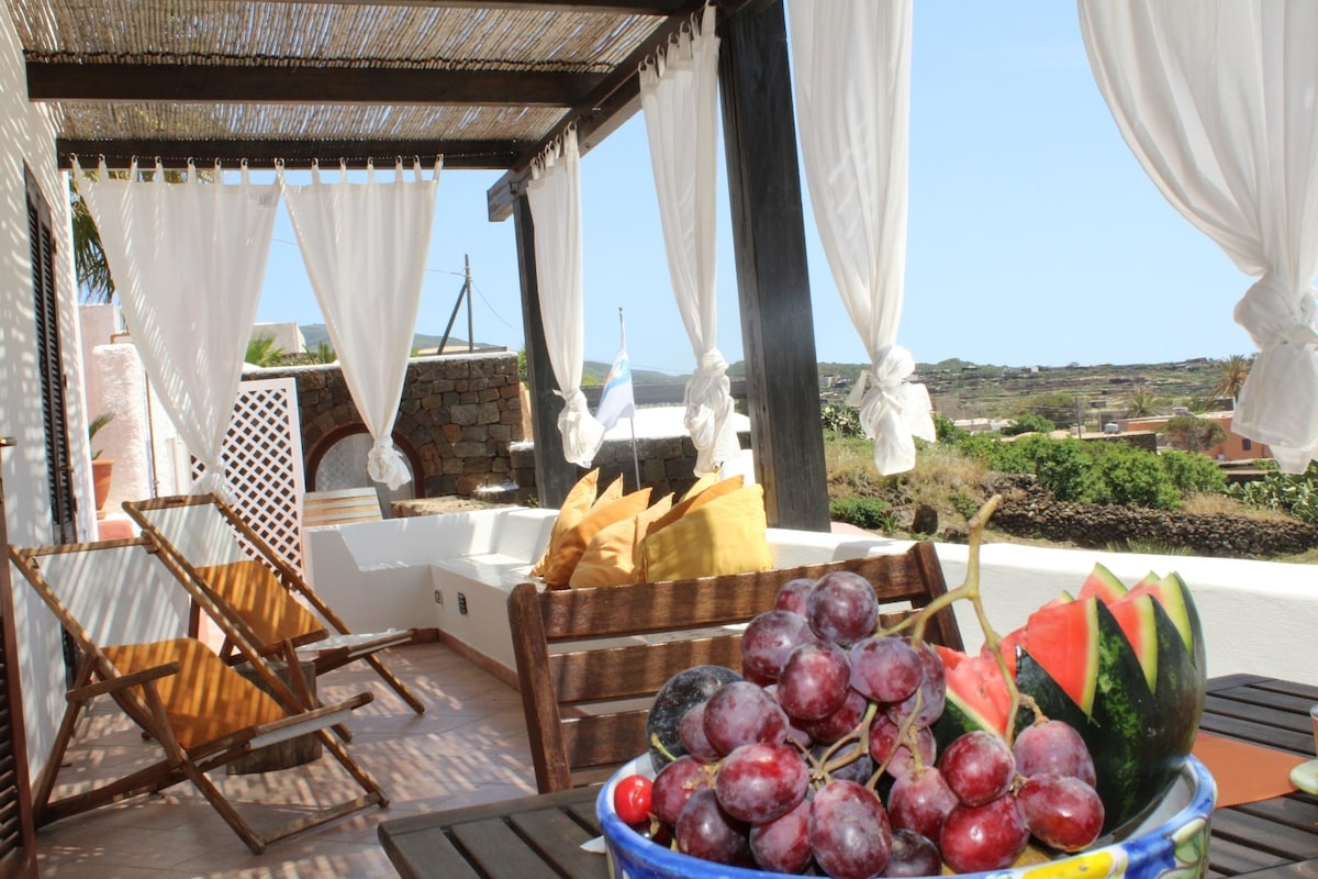 Dammuso je tipična struktura otoka Pantelleria, ki jo sestavljajo debele kamnite stene,ki vzdržujejo optimalno temperaturo znotraj hiše, veliki obokani stropi. Hiša je razdeljena na pet sob: kopalnica s prho in opremo, spalnica s čudovitim obokanim stropom z zakonsko posteljo in enojno posteljo, niša z drugo zakonsko posteljo brez vrat !Velika dnevna soba in opremljena kuhinja v bližini hiše s senčnim zunanjim prostorom.