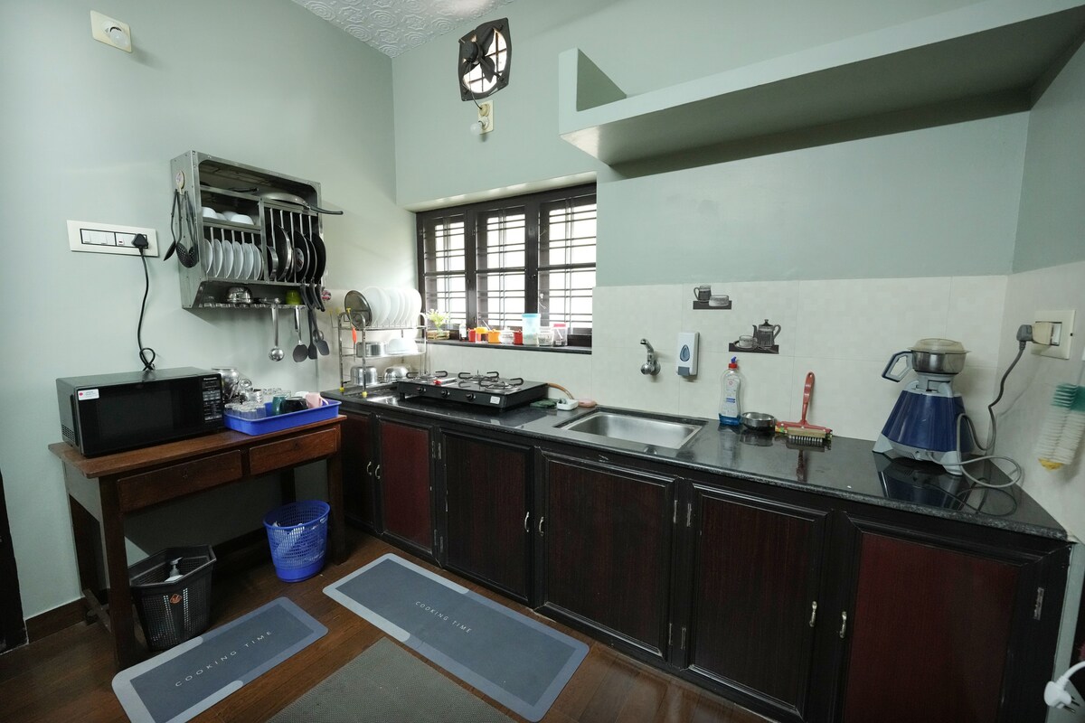 Indeevaram: Heart of Thrissur City Homestay-AC Comfort & Modern Amenities. Welcome to Indeevaram, your cozy retreat right in the bustling heart of Thrissur city ! Perfect for families, couples, or business travelers, this tidy 2-bedroom homestay offers air-conditioned bliss, a fully equipped kitchen, and a hassle-free stay. Key Features :2 AC, Attached Bedrooms - comfy Double beds. AC Dining Hall : Enjoy meals in style, ideal for group gatherings. Spacious Kitchen& Work Area with washing machine