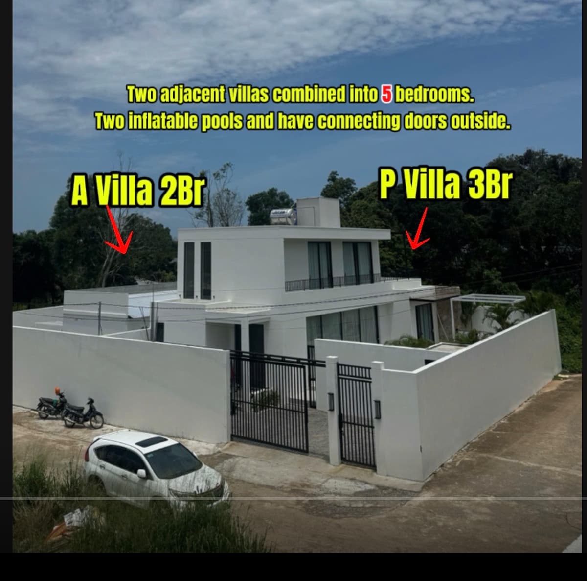 We offer 3-bedrooms villa with separate living room, dinning table, and large kitchen. Our guests will enjoy the free access to large pool 110 square meters, shallow water for kids, and deep water for adults to dive in. There's free use of playground, outdoor bbq table and facility. There's a free large, safe parking on the premise. our place is surrounded by big tree, garden, fruit trees and variety of birds. We also serve food and drinks starting from 7 am to 9pm.