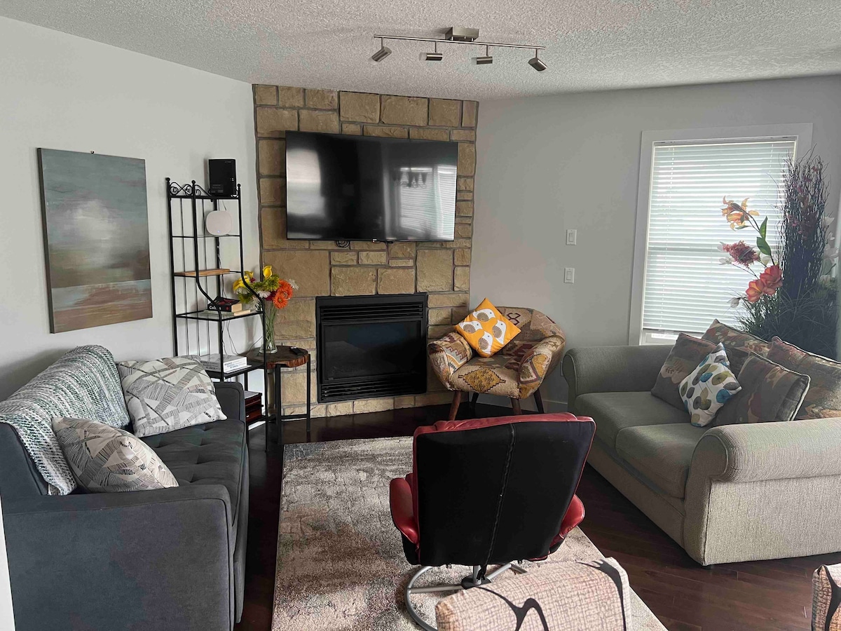 Čudovita dvonadstropna hiša 1,400 kvadratnih čevljev, 3 spalnice, 2,5 kopalnice, enojna garaža, S/S aparati, udoben kamin, ograjeno dvorišče, ognjišče. Enostaven dostop do jezera Wabamun, marine in ribolova skozi vse leto, umetniških in drugih festivalov poleti, prenosni A/C. Wabamun Provincial Park 5 min, mesto Stony Plain & Spruce Grove 20 min. Popolnoma brez hišnih ljubljenčkov, visokih alergij. v bližini igrišča za golf, pokrajinskega parka Wabamun, plaže Camp Tanner Beach, plaže Seba in še marsikaj. Ni rezervacij tretjih oseb.