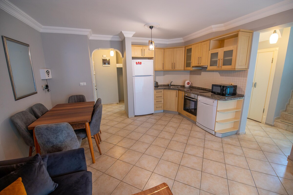 It is within walking distance to markets, bus terminal and Erasta shopping centre. Ölüdeniz beach is 11 km away, the center is 2 km away. Detached entrance, detached garden, parking lot, terrace. You can barbecue in the garden. There is 1 double bed, 2 single beds, 1 orthopedic spring mattress, 1 sofa bed and 1 parking crib. All rooms have air conditioning There is high speed internet. There are 55 inch Samsung TV and 40 inch LG TV. The kitchen has the necessary items for cooking and eating.