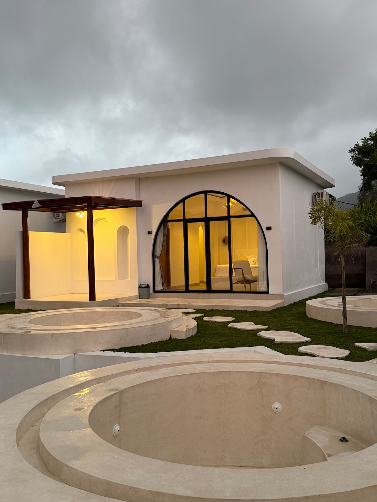 Experience ultimate relaxation in the heart of Bali at exclusive luxury bamboo villa in Sidemen. Wake up to a breathtaking view of Mount Agung right from your bed, and unwind in your private Jacuzzi hot pool surrounded by lush nature. Enjoy a complimentary breakfast each morning, and savor delicious meals at our restaurant prepared with fresh, organic produce from our own farm. A dedicated butler is always on hand to make your stay seamless and truly indulgent.