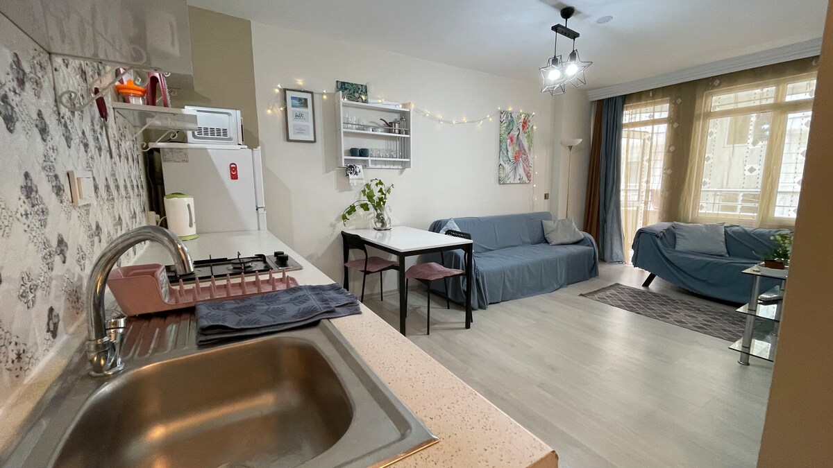 Apartma 1+1 z dnevno sobo in spalnico, opremljen z vsem potrebnim za udobno bivanje. Topla voda, klimatska naprava v vsaki sobi, brisače, posteljnina, copati, milo, detergent. TV z več kot 500 kanali, dvokomorni hladilnik, neomejen internet visoke hitrosti, sušilnik za lase, likalnik. Na balkonu je pohištvo za prijetno druženje. Trgovina je tik ob hiši, morje je oddaljeno 7 minut hoje, do centra je 3 km, v bližini sta trgovina Metro in nakupovalni center. Dodatno se plača samo elektrika po števcu.