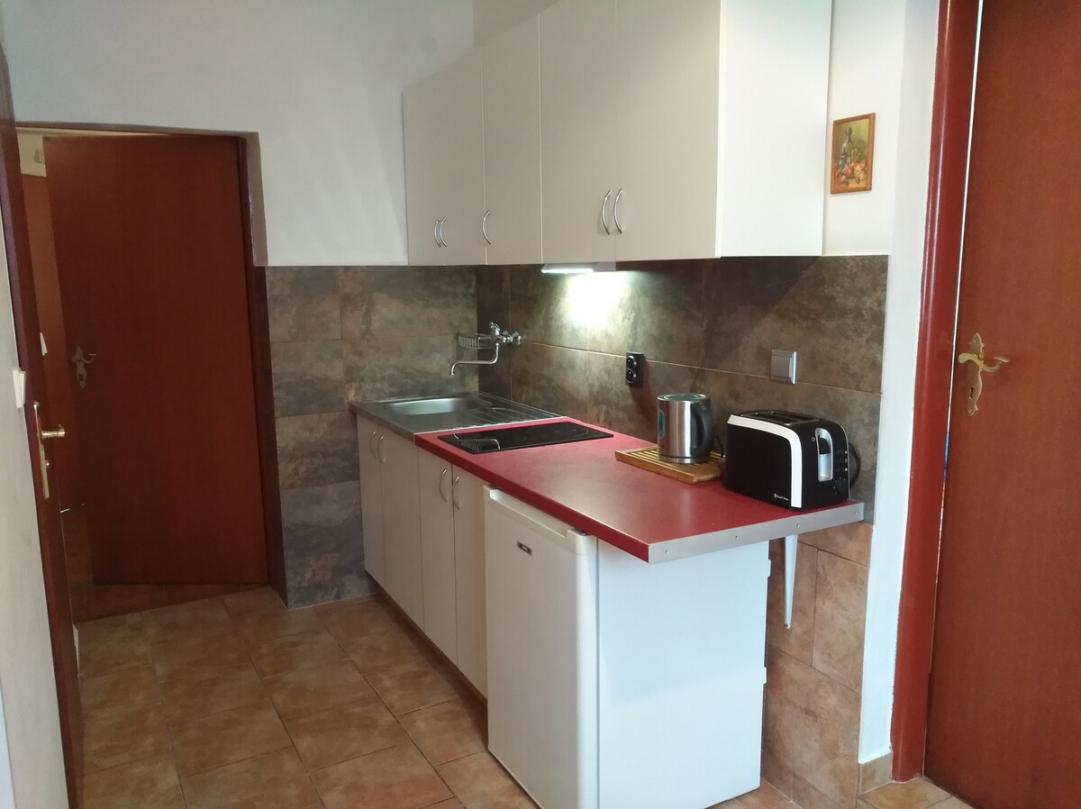 Ponujamo vam stanovanje 2+KK na mirni ulici Zámecký vrch 23 v zgodovinskem središču mesta s prostorno teraso s pogledom na mirno gozdno pokrajino in Jelení skok, idealno za sprostitev na svežem zraku.Stanovanje ima spalnico z zakonsko posteljo, dnevni prostor s popolnoma opremljeno kuhinjo in raztegljivim kavčem ter dve kopalnici (kopalna kad, stranišče, pralni stroj in prha). Na voljo je zasebno parkirišče, vključno s polnilnico za električne avtomobile. V stanovanju je prepovedano kajenje, Wi-Fi in kava pa sta brezplačna. Največje število gostov je 4.