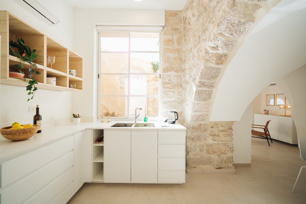 V osrčju starega mestnega jedra Acre, romantično stanovanje, zasnovano in lepo. Vključuje kuhinjo, aparat za kavo, z razkošno posteljo holandia tempur, visoko raven posteljnine in brisač , visokokakovosten stereo, kabelsko televizijo in pristen balkon. Naš apartma ima pogled na shazlia z balkona. Izraelski državljani morajo plačati DDV 17%. loaten v prvem nadstropju s stopniščem.