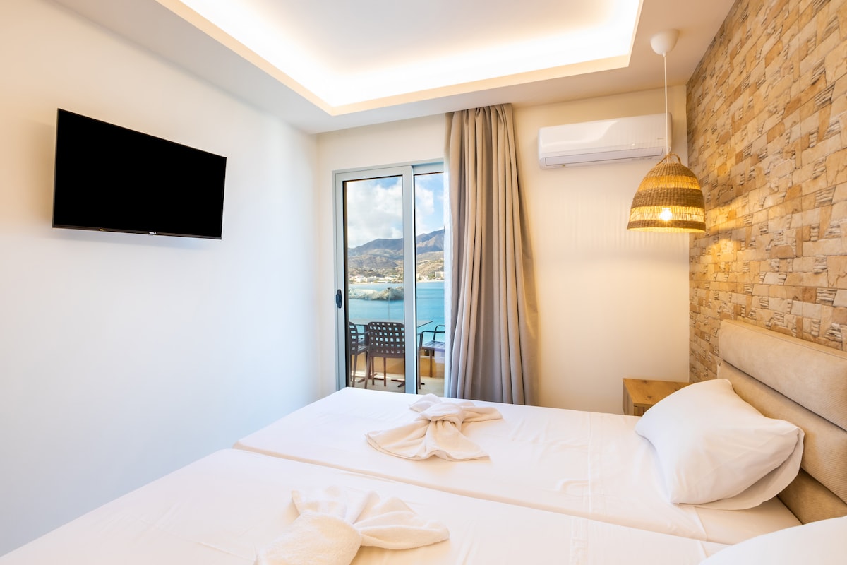 Promenade luksuzni apartmaji s pogledom na morje spredaj so na voljo v središču Pigadia. Povečajte vse svoje čute in uživajte v bistvu življenja, iz udobja naših prenovljenih deluxe sob. Odprite oči na čudovito modro morje in nebo. Poslušajte zvok brizganja vode. Povohajte in okusite vse lokalne dobrote, ki so dostopne na vašem pragu.Dotaknite se in začutite slan poletni vetrič iz udobja vašega balkona. Veselimo se, da vas bomo lahko videli in da bo vaše bivanje nepozabno doživetje.