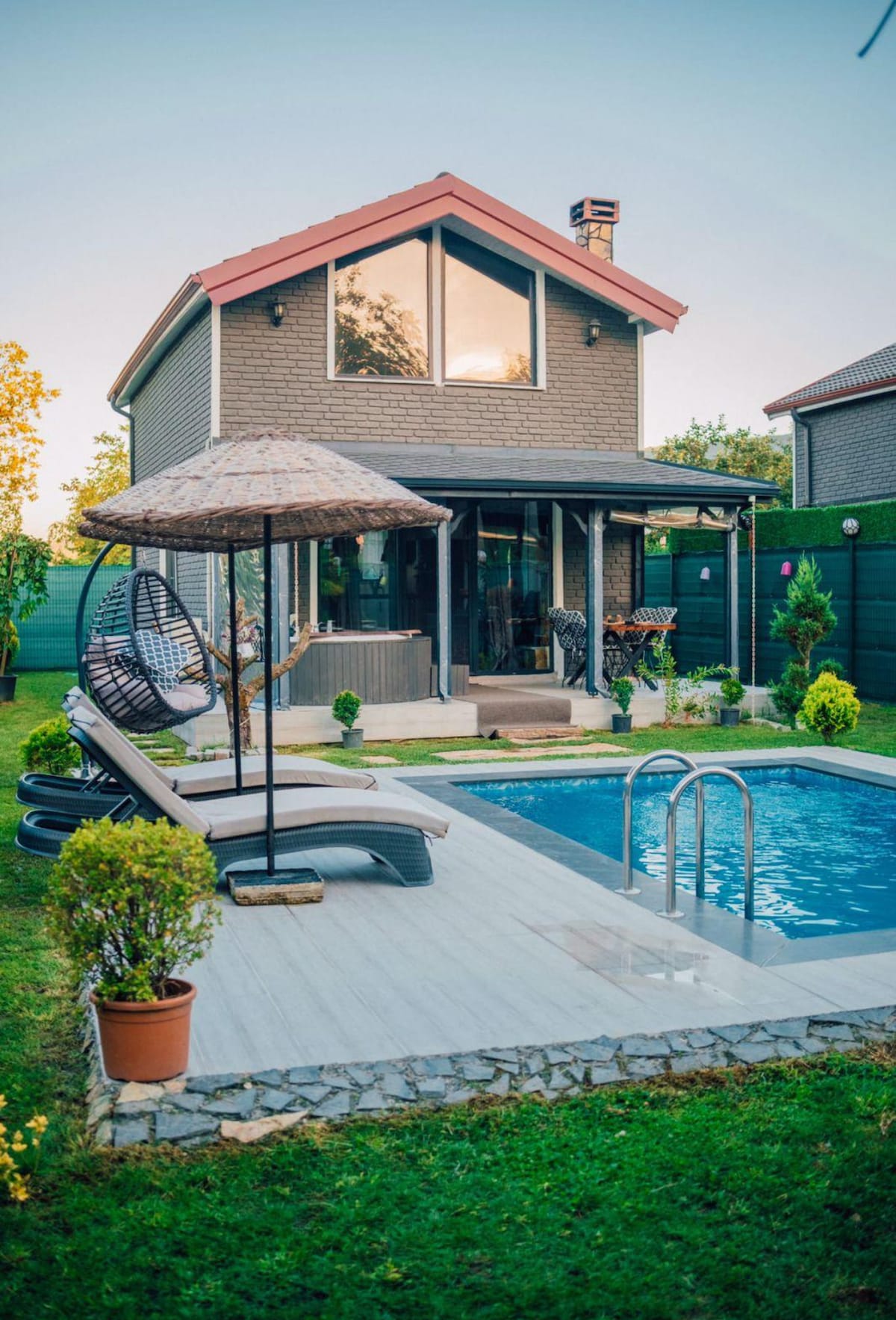 V mojem čudovitem bungalovu v vili Sapanca boste našli tudi mir, ki ga obdaja edinstvena narava, dan pa boste začeli samo z zvoki ptic ☀️💫🍁🍂 Zajtrk za🌟 2 osebi🍳 🌟1 spalnica ( 1 predelano nadstropje s pogledom na jezero) Sprejme do 6 oseb✔️ velik prostoren bazen z zasebnim ogrevanjem🌟 za vas🏊♀️ Velik prostor Ognjišče, kjer se lahko lepo pogovarjate, da se🌟 ponoči ogrejete🔥🔥 🌟Popolnoma zaščitena ločena velika vrtna površina Velika gugalnica Velika vrtna miza 🏡 🌟 Žar🍗 🌟Netflix📺 🧯Detektor dima v🌟 požarni cevi 🌟Prihod: 14:00 🌟Odhod:11:00