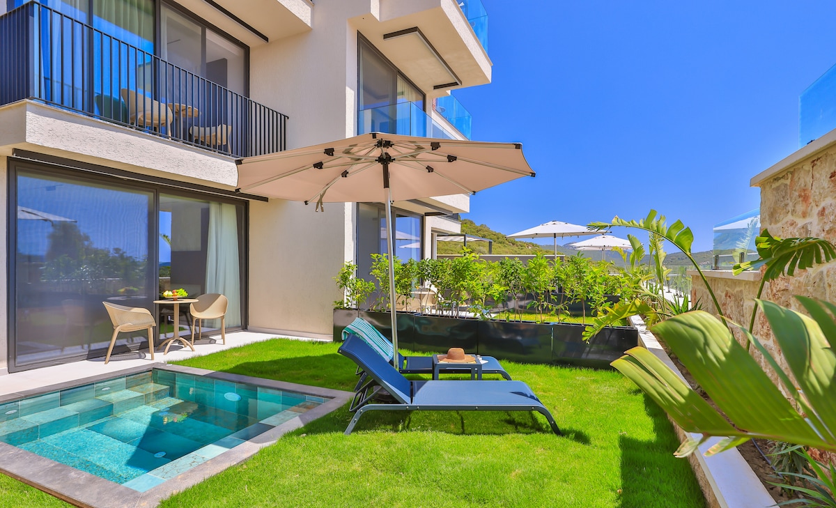 S popolnoma opremljenim dnevnim prostorom velikosti 35 do 40 kvadratnih metrov ima ta soba zasebni bazen in masažno kad s pogledom na naravo in morje. Soba se nahaja v stavbi 2 do 5 minut vožnje od plaže Büyükçakıl in središča Kas. Stavba ima tudi dva velika bazena. Edinstvena počitniška lokacija za tiste, ki imajo radi Kas, zgodovino in naravo. Med počitnicami se lahko odpravite na številne oglede, kot so izleti z ladjo, kajaki, potapljači, uživate v naravi in morju.