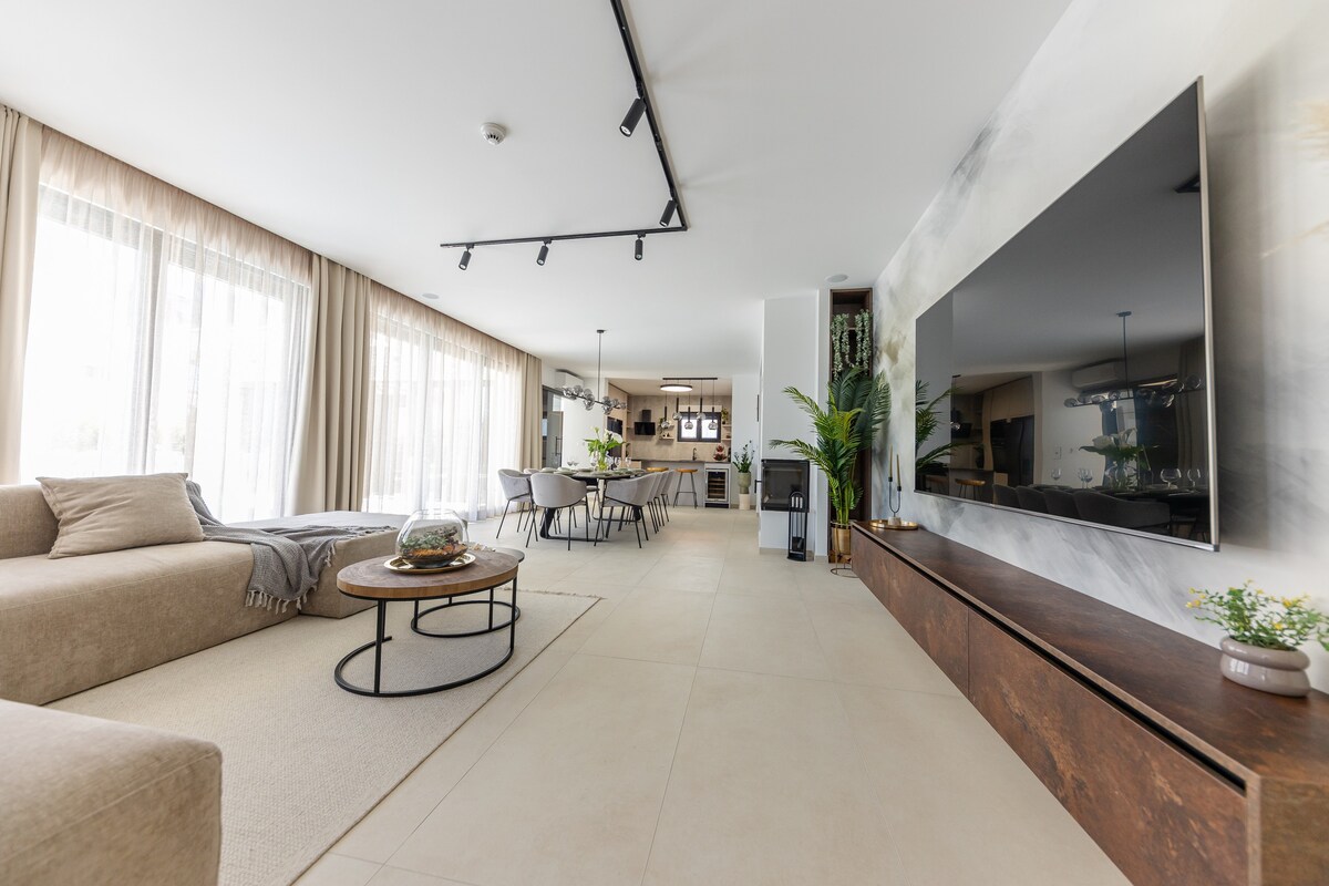 Doživite raj v tem sodobnem stanovanju velikosti 130 m2, ki se nahaja v očarljivi vasi v bližini Jadranskega morja. Z ekskluzivnim dostopom do številnih izjemnih potrebščin, vključno z avdiofilsko sobo, igralnico/igralnico PS4+PS5 ter spa cono s savno in masažo na zahtevo. Sprostite se v masažni kadi, se potopite v ogrevan bazen z območjem za žar in raziščite območje s 4 MTB-ji (vključno z dvema električnima), ki so vam na voljo. Vaš popoln oddih vas čaka.