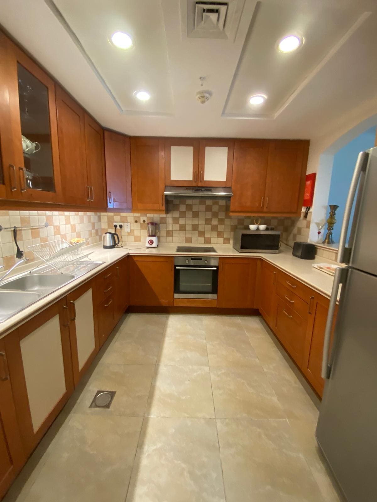 Fully furnished 2 bedrooms apartment with 3 bathrooms, 2 beach view balcony , living room and closed kitchen . All rooms have beautiful beach view facing to moon tower . Basement parking available - Walking distance to Lusail night market and close to Vendome Mall. Gym, Sona and Swimming pool facilities available . Free Wifi .