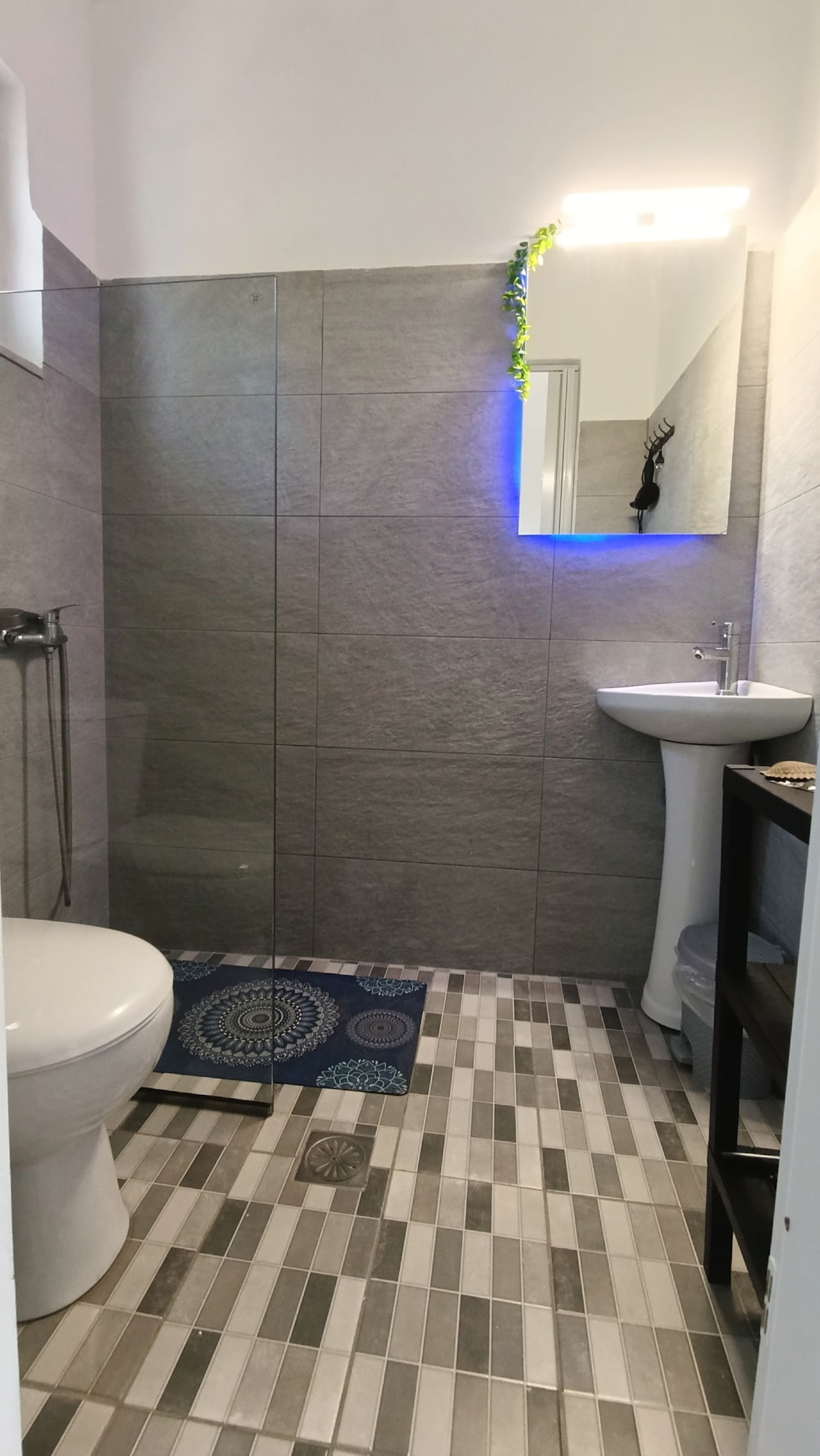 Soba vključuje zakonsko posteljo (180 x 200 cm), enojno posteljo (90X200) in raztegljiv kavč z enim sedežem (85 x 195 cm) . Uživajte v sodobni opremi, kot so brezplačen Wi-Fi, klimatska naprava in popolnoma opremljena kuhinja v prostoru, ki brezhibno združuje eleganco in funkcionalnost. Morje je oddaljeno le 5 minut vožnje z avtomobilom ali 8 minut hoje. Če potrebujete potrdilo ali račun, nas o tem obvestite pred odhodom.