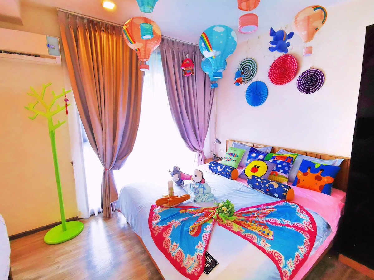 亲子寰球之旅主题/500米芭东海滩/步行江西冷/超大泳池/超高性价比/中文房东