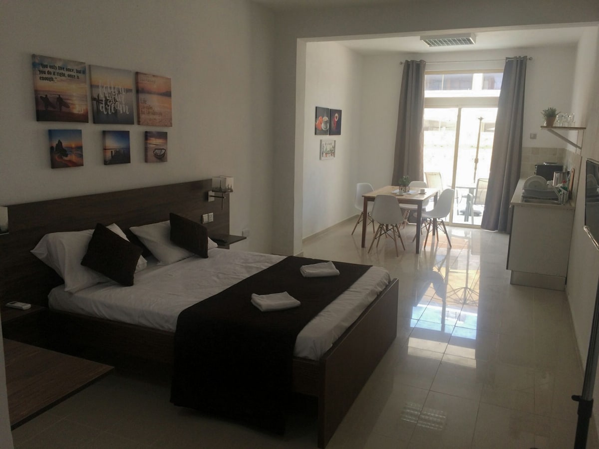 Studio je bil v celoti obnovljen junija 2018. Ima vse najnovejše opreme, je udobna, velika, udobna in ima lep slog. Čisto nova kopalnica in stranišče. Kuhinja ima vse, kar potrebujete, kot so kuhalne plošče, mini pečica, kuhinjske potrebščine. To je zelo blizu številnih hotelov v Kato Paphos in številnih arheoloških muzejev. Zasebno parkirišče je tik pred vhodnimi vrati. Ogromen supermarket je nasproti apartmaja.3 minute hoje do morja in 8 minut hoje do starega pristanišča in starega gradu!
