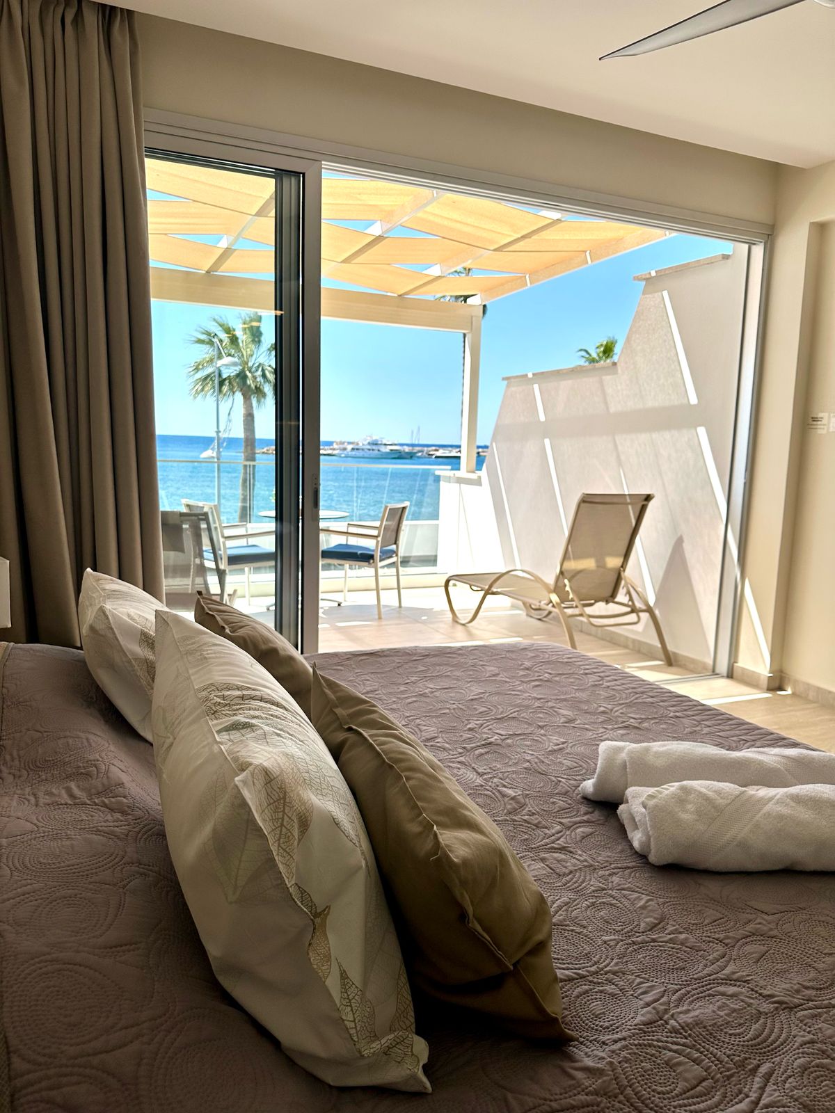 Panoramski studio apartma s pogledom na morje gleda na pristanišče in srednjeveški grad Paphos. Nahaja se v osrčju turističnega in zgodovinskega območja Kato Paphos, minuto hoje do morja, sprehajališča, barov, restavracij itd. Garsonjera je kompaktna, z zasebno kopalnico, popolnoma opremljeno kuhinjsko nišo, balkonom, klimatsko napravo, brezplačnim BREZŽIČNIM INTERNETOM in pametno televizijo. Zajtrk je vključen v našo restavracijo Harbour, ki se nahaja tik za vogalom od 9.30 do 11.30.