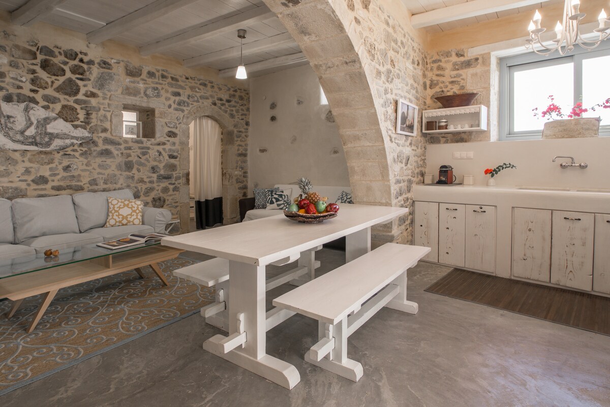 Ob vznožju gore Giouchtas, v slikoviti vasici Archanes, se naša kamnita podeželska hiša nahaja v enem izmed najlepših in osrednjih delov območja. Archanes so 20 minut stran od središča Herakliona(15 km), 15 minut stran od mednarodnega letališča Heraklion, 15 minut stran od slavne minojske palače Knossos, in 20 minut stran od številnih čudovitih plaž. Nahaja se v središču najpomembnejše vinorodne regije Krete, ima 5000 let staro zgodovino, medtem ko so izkopavanja, izvedena v zadnjih 50 letih, razkrila veliko lokacij, ki segajo v minojsko obdobje. Vas je zelo znana tudi po tipični kretski arhitekturi. Večina hiš je bila pred kratkim obnovljena, Archanes pa je prejel drugo nagrado kot »najboljšo obnovljeno vas v Evropi«. Hiša ima prostorno notranjost in zasebni vrt, ki je zaščiten z obrobno steno. To je značilnost starih kretskih hiš na tem območju. Gostje vstopijo na zasebni vrt skozi vrata, ki nato vodijo do glavne stavbe. Vedno sem na voljo svojim gostom, da lahko poskrbim za njihove počitnice brez težav. Gostje lahko stopijo v stik z mano prek mobilnega telefona, mi pošljejo SMS ali sporočilo neposredno v moj nabiralnik. Nahaja se ob vznožju gore Giouchtas, v slikoviti vasici Archanes, in se nahaja v enem izmed najlepših in osrednjih delov območja. Archanes je oddaljen 20 minut od središča Herakliona in plaž. Gostom vedno priporočam najem avtomobila, da lahko uživajo v počitnicah tako, da vsak dan obiščejo veliko krajev. Poleg tega je v bližini hiše brezplačno parkiranje. Podeželska hiša je oddaljena le 20 min od »letališča Nikos Kazantzakis« in pristanišča. Arheološko najdišče Knosos je oddaljeno 15 min.