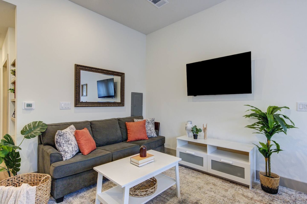 Dobrodošli v našem zasebnem garsonjeri! Na voljo imate 1 BREZPLAČNO parkirno mesto in parkirno mesto na ulici vzdolž Commonwealtha. Doživite užitek naših vrhunskih zaključkov in odlične podpore strankam. Naša lokacija je popolno prenočišče za potujoče medicinske sestre, zato lahko preprosto raziščete vse, kar ponuja Houston. Prostor V celoti opremljena namestitev ponuja sodobno opremo in priročnost, vključno s pametno 65-palčno televizijo ( Netflix, Disney plus) s klimatsko napravo, pralnim/sušilnim strojem in polno kuhinjo z vso osnovno opremo