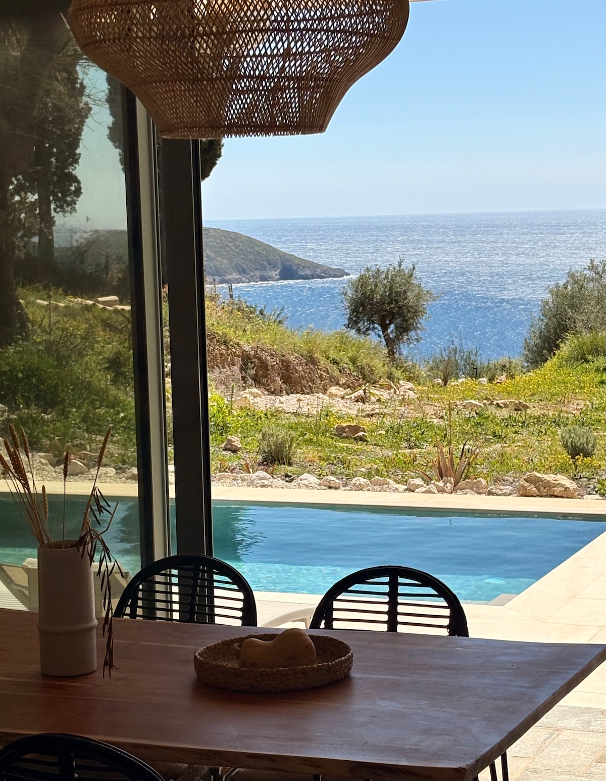 Pobegnite v to očarljivo obmorsko vilo, kjer se sodobna zasnova sreča z osupljivim razgledom. Velika okna se odpirajo proti neskončnim modrim in nepozabnim sončnim zahodom ter ustvarjajo popolno vzdušje za sprostitev. Tik pod hišo se nahaja edinstvena plaža — napol peščena, napol prodnata — vas vabi, da se kadarkoli potopite v kristalno čisto vodo. Redko prenočišče, ki združuje razkošje, mir in neposreden dostop do morja za nepozabno bivanje.