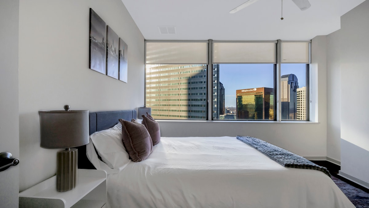 Uživajte v elegantnem doživetju z razgledom na visoke stavbe v središču mesta, v bližini vseh zabavnih vsebin, restavracij, kongresnega centra, lepotnih centrov, nakupovalnih območij in pisarn Javni prevoz, Uber/Lyft je zelo razpoložljiv Dostop do telovadnice, bazena (morda odprt ali zaprt) in zunanjih prostorov Balkon v enoti, kjer lahko uživate kadarkoli v dnevu Brezplačno parkiranje v garaži v stavbi.