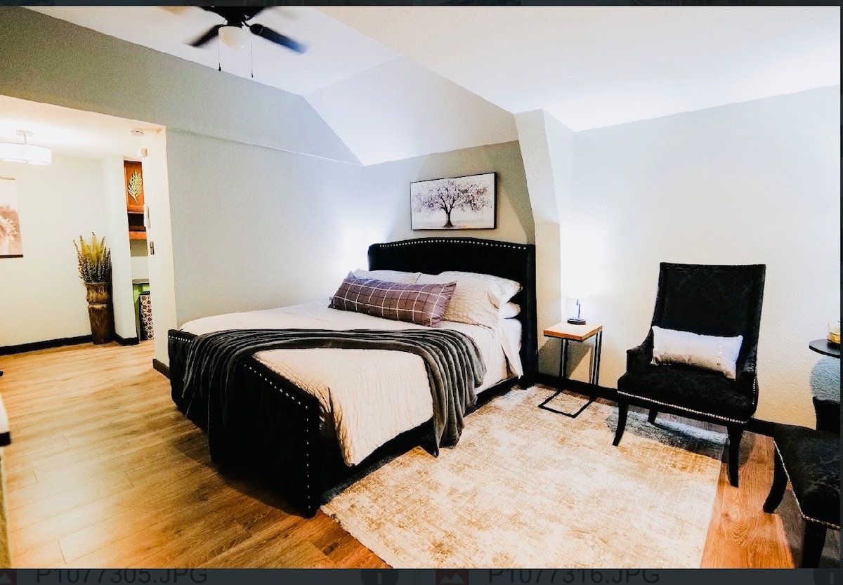 Dobrodošli v vašem novem domu stran od doma! Vstopite, sprostite se in uživajte v tem čudovitem prenočišču. Ponujamo vam vse osnovne potrebščine, kot so čiste rjuhe in brisače, kopalniške potrebščine, kava, nekaj hrane za zajtrk in druga oprema, ki vam je na voljo. Sprostite se ob žaru na čudoviti, zasebni terasi na dvorišču. Uživajte v udobju naše čudovite dnevne sobe z OMREŽJEM WI-FI in pametno televizijo! Uživajte tudi v novih vzmetnicah iz blazine in spominske pene!