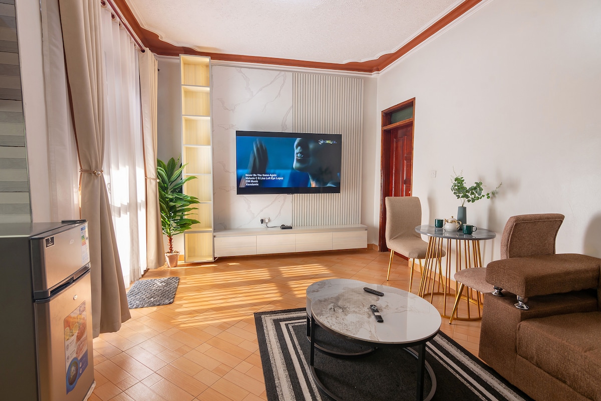 This fully furnished modern 1 bed room/1bathroom/1 balcony apartment is home to beautiful sunsets and best hill views and within walkable distance to the famous Bahai Temple.The apartment comes with free wifi, a flat-screen TV, a washing machine, and a kitchen with a microwave and fridge, free private parking and a water heater,Towels and bed linen. It is about 2KM to Kampala city, 1km to Acacia Mall, 5km to the Golf Club, while the Fort Lugard Museum is 3.7 km and 30km to Entebbe Airport.