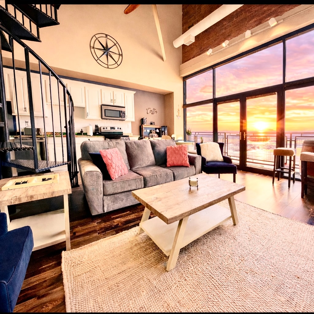 Uživali boste v sproščanju v prostornem, odprtem dnevnem prostoru z dvonadstropnimi stropi. Sprehodite se na balkon in uživajte v čudovitem razgledu na jezero Erie, Cedar Point in središče Sanduskyja. Ta sodoben prostor z 2 udobnima zakonskima posteljama vključuje vse, kar potrebujete med bivanjem: popolnoma opremljeno kuhinjo s kavnim barom, toaletne potrebščine, hitrim brezžičnim internetom, pametnimi televizorji, bazenom, masažno kadjo in fitnesom. Oddaljenost od restavracij, trajektov, destilarne in znamenitosti. Kratka vožnja do Cedar Pointa, vinske kleti.