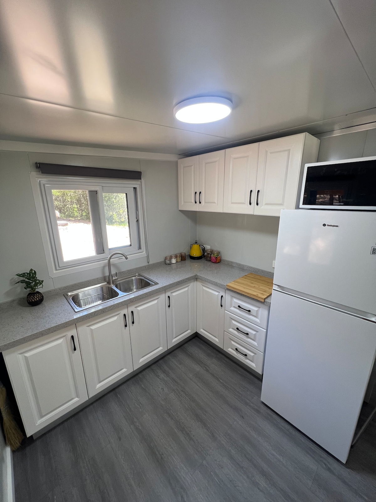 Cute couples retreat, dog friendly, for an overnight stopover or a minimalist staycation. The self-contained, private guesthouse features a bright lounge area (with kitchenette), opening up to a timber deck for relaxing afternoons watching the sunset; a fully functional bathroom with washing machine and dryer; and a bedroom bathed in morning sunlight with an enclosed courtyard for doggo. 🐾 Please read policies and rules before booking.
