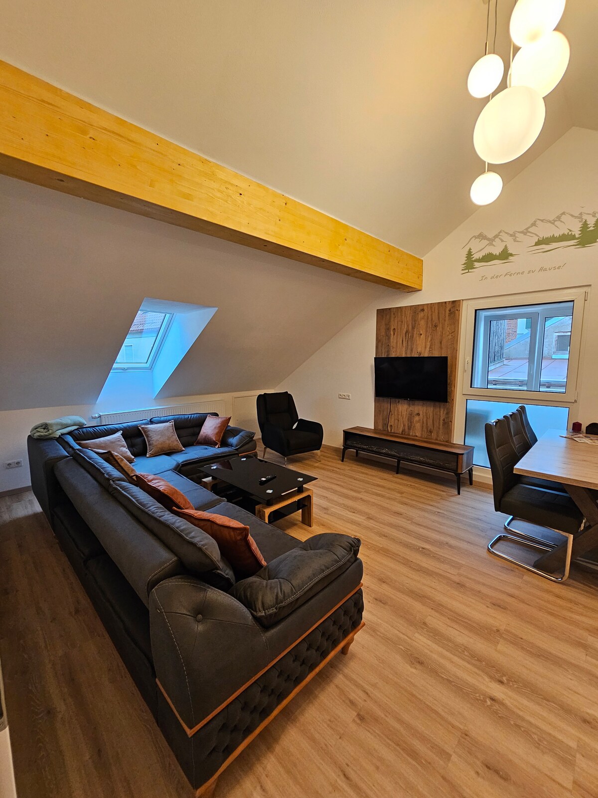 Our bright, charming apartment in Pfronten accommodates up to 5 guests and offers a spectacular view over the rooftops of Pfronten and the Allgäu mountains. Ideally located for exploring Neuschwanstein Castle as well as numerous ski and hiking areas. Start your day with breakfast on the balcony while enjoying the panoramic mountain views – the perfect retreat for nature lovers and anyone seeking relaxation.