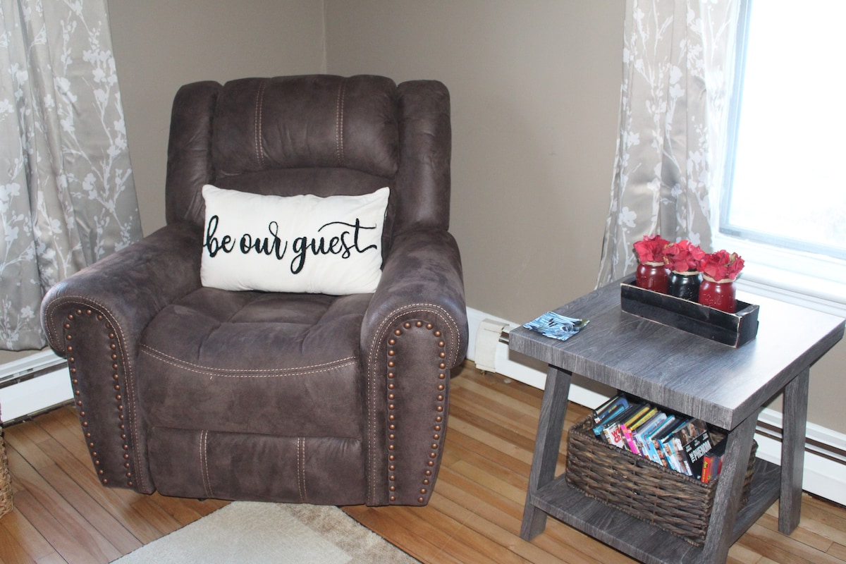 Naše enosobno stanovanje je na več nadstropjih z velikim skupnim prostorom. Jejte zunaj na veliki terasi ali pa se sprostite ob ognjišču. Preživite dneve v nakupovanju v Bangorju, raziščite narodni park Acadia, observatorij Penobscot in še veliko več čudes naše velike države. Ponoči se sprostite v klimatski napravi in priredite svojo najljubšo predstavo. Vsak dan začnite z brezplačno kavo. Naše stanovanje ima vse, kar potrebujete za prijetno bivanje. *Stopnice v sklopu namestitve so razmeroma strme. Kopalnica v prvem nadstropju, spalnica v drugem nadstropju *