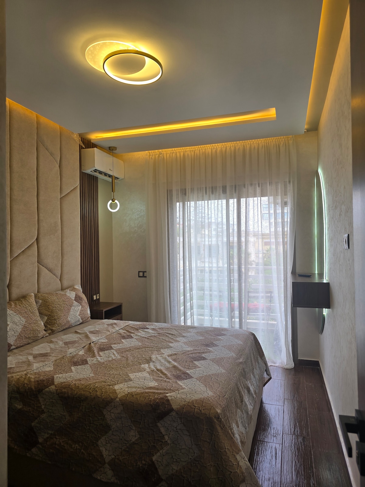 Svetlo 120 m² veliko stanovanje s tremi fasadami in celodnevno sončno svetlobo. Le 5 minut od plaže, 10 minut od Kenitre in 3 minute od Marjane. Uživajte v udobni dnevni sobi, zasebni kopalnici, namenskem delovnem prostoru in hitrem omrežju Wi-Fi – popolno za družine, pare ali delavce na daljavo. V bližini kavarn, tržnic in nakupovalnega središča, z enostavnim dostopom do Rabata (40 min).
