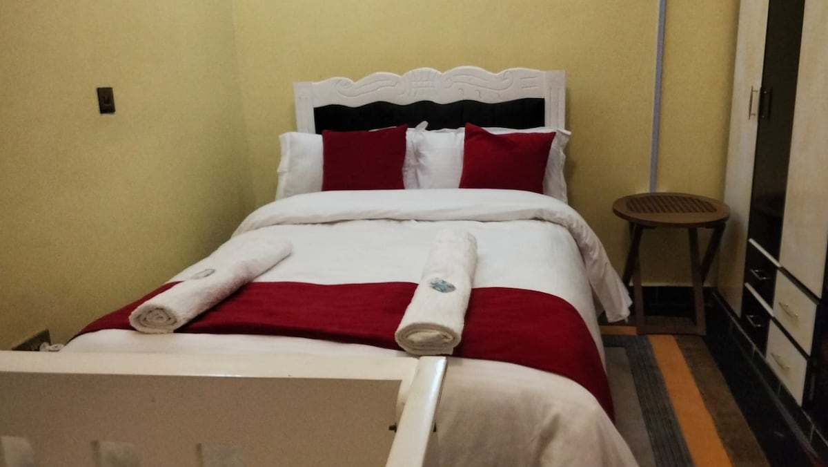 Pozabite na skrbi v tem prostornem in mirnem prostoru na listnatem območju Karen v Nairobiju v Keniji. Samostojna suita za goste 1 BR s hitrim Wi-Fi-jem, pametno televizijo, Netflixom, udobno zakonsko posteljo (Queen), zasebnim vhodom, zasebno kuhinjo, zasebno kopalnico in velikim vrtom. Blizu nakupovalnih središč, kot so nakupovalno središče Galleria, Hub Karen in Waterfront Karen. Bližnje turistične znamenitosti vključujejo center za žirafe, muzej Karen Blixen, kenijske bombe in narodni park Nairobi.