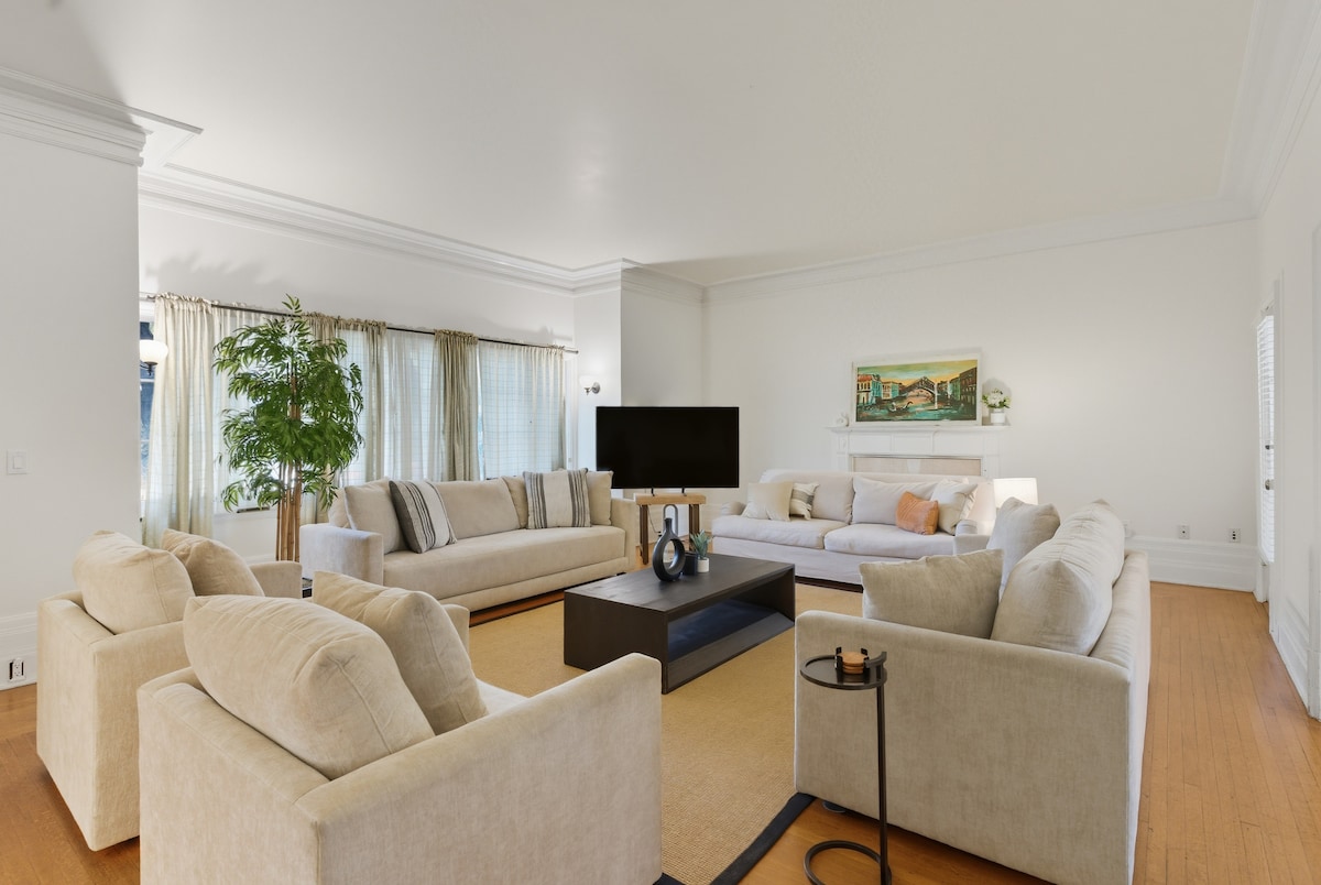 Ta elegantna nastavitev je kot nalašč za večje skupine. To prenočišče lahko udobno sprejme skupine 12 oseb. To ogromno prenočišče s površino 4375 kvadratnih metrov ima 5 velikih spalnic in 3 prostorne kopalnice. To prenočišče je bilo temeljito prenovljeno, osredotočeno na ohranjanje prvotnega značaja, hkrati pa prinaša sodobne ugodnosti. To prenočišče se nahaja v središču mesta Downtown, 7 minut hoje od hotela Padre, arene Rabobank, gledališča The Fox Theater, Zama, Jin Sushija in nekaterih drugih naših najljubših lokalnih restavracij in barov.