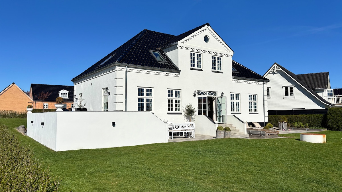 Sodoben dom v bližini narave in mesta v osrednjem delu Danske
