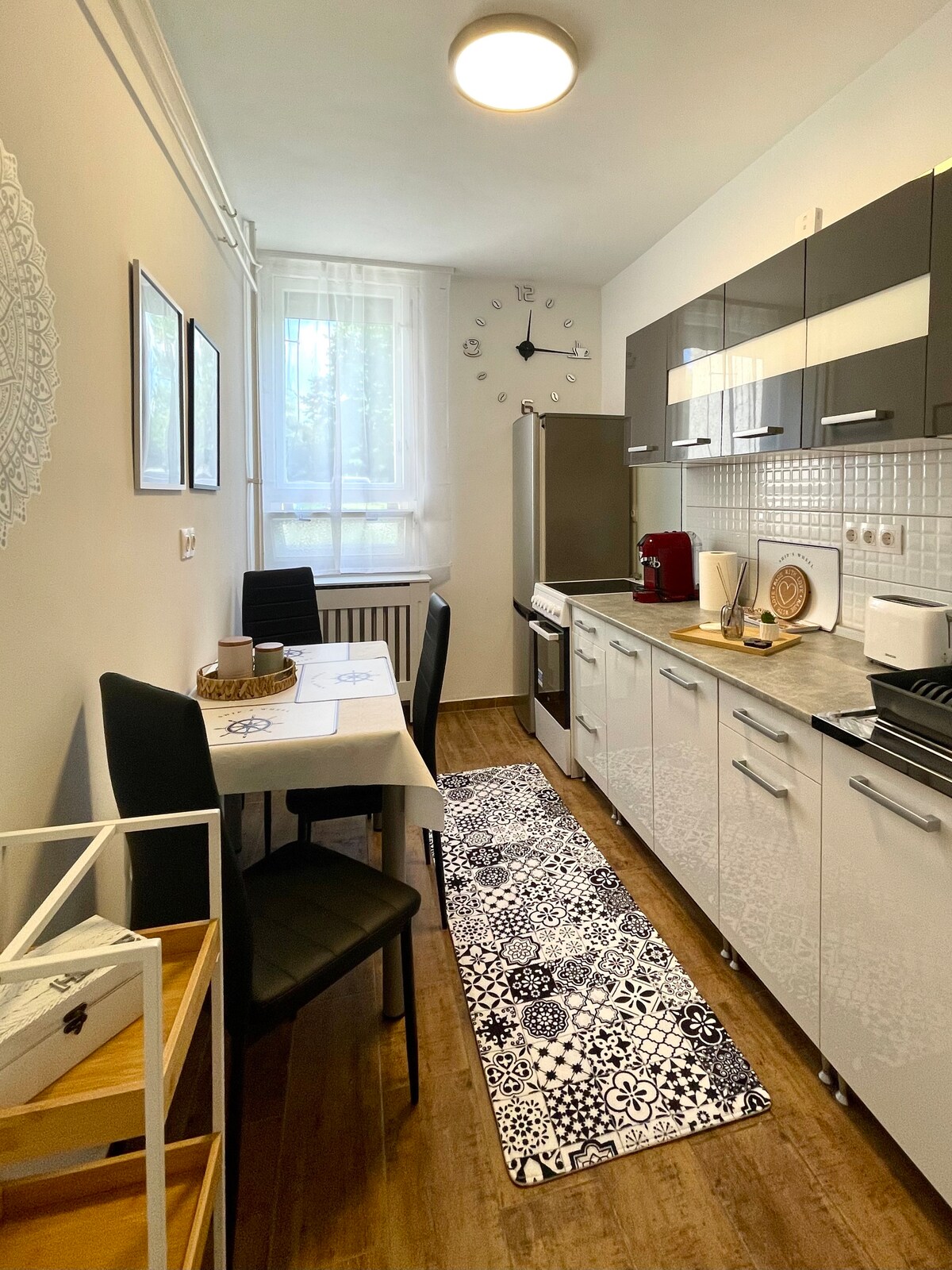 48 m² double room air-conditioned apartment for rental in Keszthely, capital of Balaton. Well equipped, recently reconditioned apartment with good location, restaurants, beaches, city centre and train station all within walking distance. Come and spend a relaxing holiday in our peaceful town. Price includes all TAX.