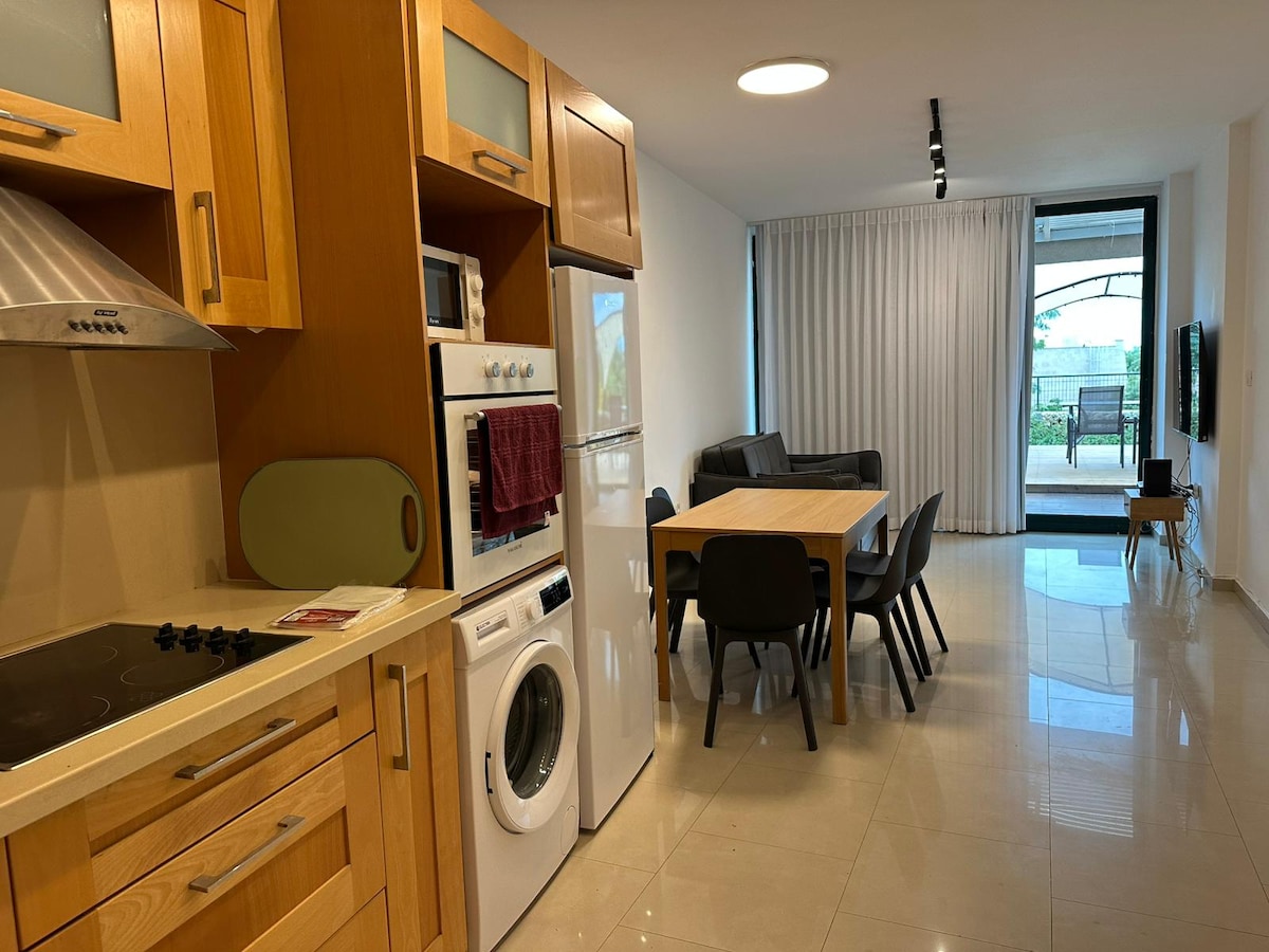 Ta novo sodobna prenovljena (2020) in klimatizirana mini penthouse (50 m2) se nahaja v 7. nadstropju v središču Netanye (mirno območje), v bližini plaže. Do stanovanja se lahko pripeljete z dvigalom(brez šabatnega dvigala) in ima lasten vhod. Penthouse ima zasebno strešno teraso (10 m2) s soncem in pogledom na morje. Kopalnica ima prho z dežjem. Do plaže se lahko sprehodite v 5 minutah in 10 minut od kikar ha'atsmauta. Supermarketi, avtobusna postaja in nakupovalno središče so oddaljeni le nekaj korakov.