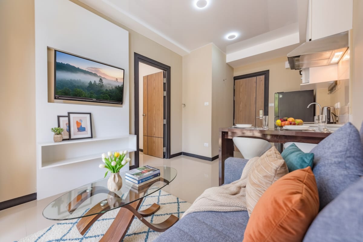 Cozy beachfront condo with full kitchen and washing machine. The price is included electricity and water expense and cleanining and linen change once a week during your stay. (if short stay feel free to negotiate for cleaning fee) We provide the best local brand amenities, towels, drinking water and conceirge service to make sure your stay comfortable like home. The location is quite place for relax and it might far from other busy area.