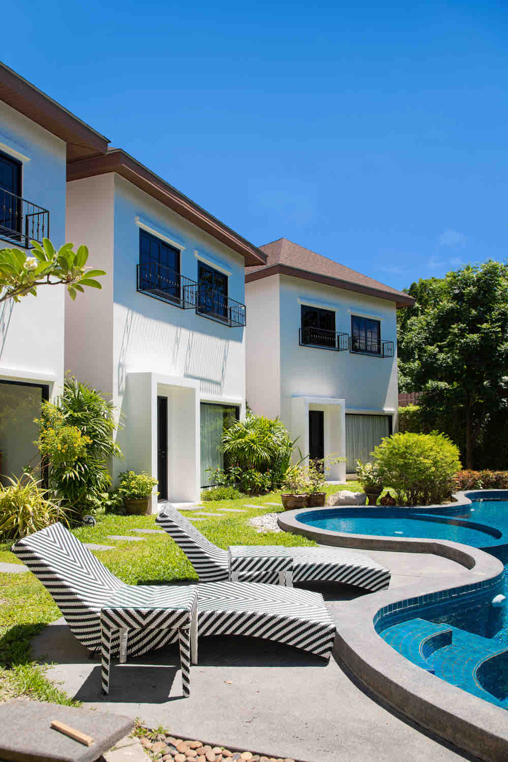Ta pred kratkim zgrajena vila se nahaja na severu Phuketa, le 15 minut od letališča. Vila se nahaja v mirnem predelu z več hišami in številnimi gumijastimi drevesi ter ima zasebni neskončni bazen z barom in vrtom. Ob vstopu v hišo pridete v velik skupni prostor s kuhinjo, jedilnico in prostorom za zabavo (TV, bazen in nogometna miza) z 2 spalnicama na zadnji strani hiše s skupno kopalnico. Za kakršnokoli podporo med bivanjem živi prva oseba za stik v bližini.
