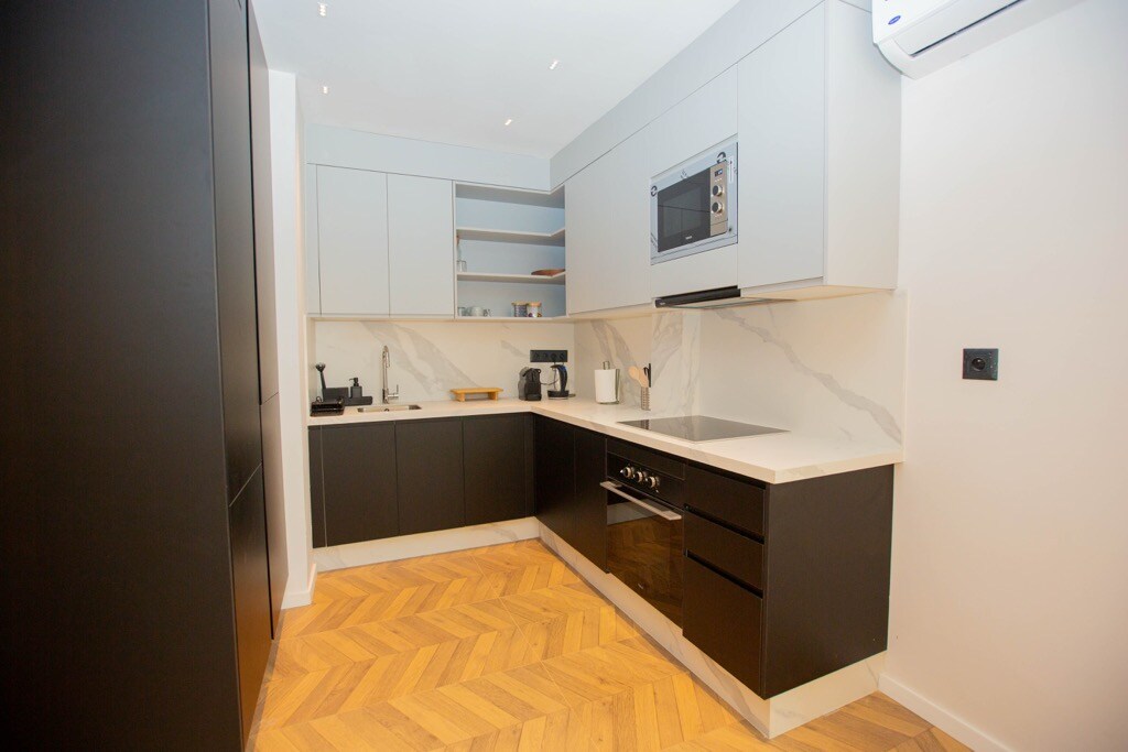 Visokokakovostno stanovanje, novo, moderno in urejeno v hotelskem slogu. 2 spalnici, 3 balkoni, centralna klimatska naprava v vseh sobah, 200 Mb/s Wi-Fi, 4K QLED 55 TV z Netflixom. Mirno bivališče, zavarovano 24 ur na dan s kletnim parkiriščem in dvigalom. Udobna posteljnina, prhe, prostor za kavo z aparatom za kavo in Nespresso aparatom (brezplačne kapsule). Kakovostne naprave. Na voljo so vam šampon in gel za prhanje ter vrhunske brisače iz mikrovlaken.