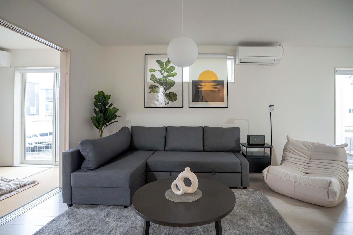 5 minut vožnje z avtomobilom do TSMC Kumamoto. Popolnoma opremljeno delovno okolje za osebni računalnik, idealno za poslovne skupine in inženirje. Približno 50 minut vožnje z avtomobilom do gore Mt. Območje vrha Aso je kot nalašč za družinske izlete ob koncu tedna. Celotna zasebna hiša (95 ㎡), dve nadstropji, 4 spalnice, sprejme do 7 gostov. Vključuje 5 enojnih postelj (japonska postelja FranceBed) in 2 futona. Tri spalnice imajo nastavljive mize, monitorje in tipkovnice. Brezplačen tiskalnik/skener, popolnoma opremljena kuhinja, pralno-sušilni stroj in brezplačno parkiranje za največ 3 avtomobile.