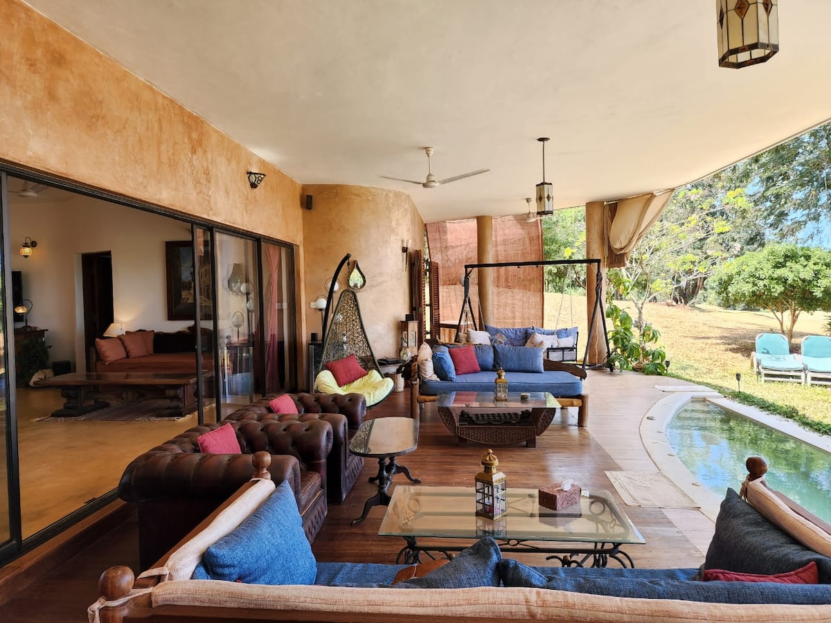 Dobrodošli v naši osupljivi vili na Kilifi Creeku! S 4 prostornimi spalnicami, zasebnim bazenom, bujnimi vrtovi in najboljšim razgledom na kenijsko obalo je to odlična oaza za sproščujoč oddih. Naša vila je popolnoma opremljena s sodobno opremo, vključno z omrežjem Wi-Fi. Nudimo tudi dnevno čiščenje in kuharja, da zagotovimo, da je vaše bivanje čim bolj udobno. Prenove in posodobitve, opravljene junija 2023.