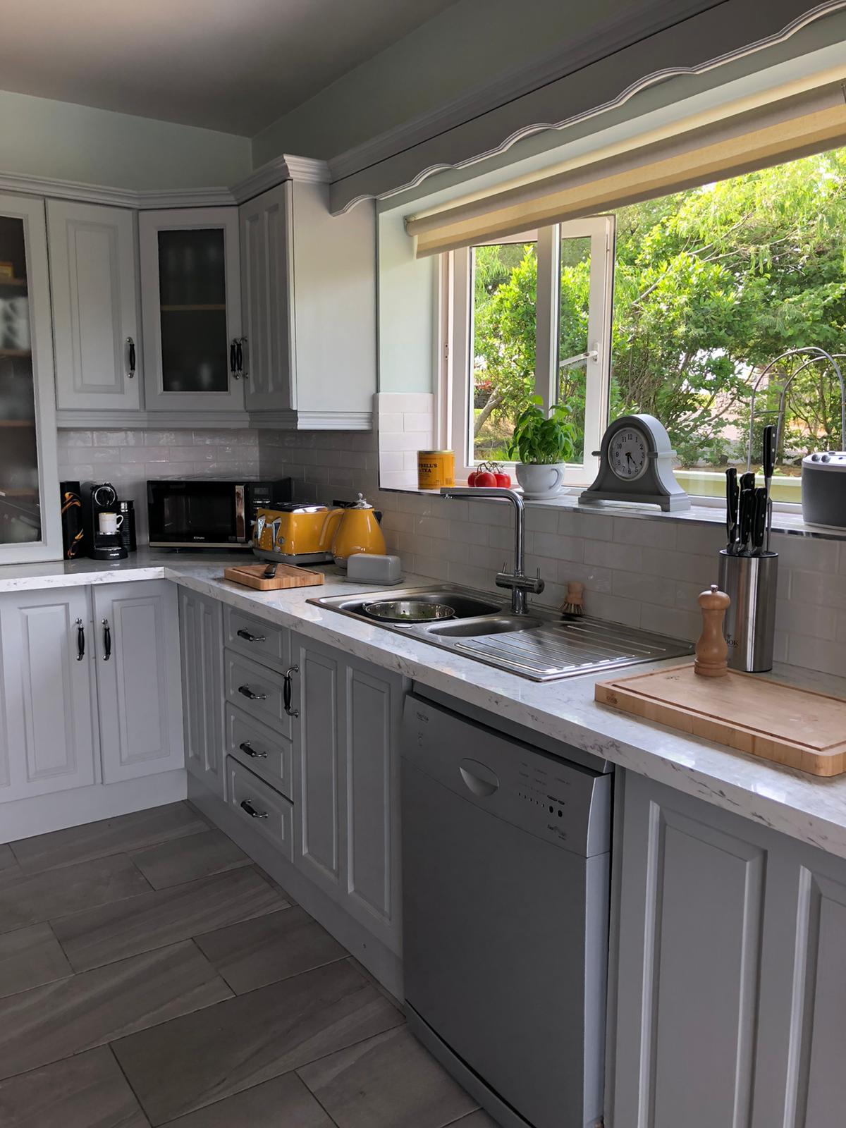 Have fun with the whole family or friends at this stylish place. There are 3 bedrooms in the house - one with a king size bed, another with a double bed and the third one is with two single beds. There is dedicated office space as well and a walking closet, equipped with iron, ironing board and steamer. The kitchen is fully equipped and the living room provides plenty of seating spaces. You can enjoy your time with friends and family in this nicely decorated house. Have a lovely stay.