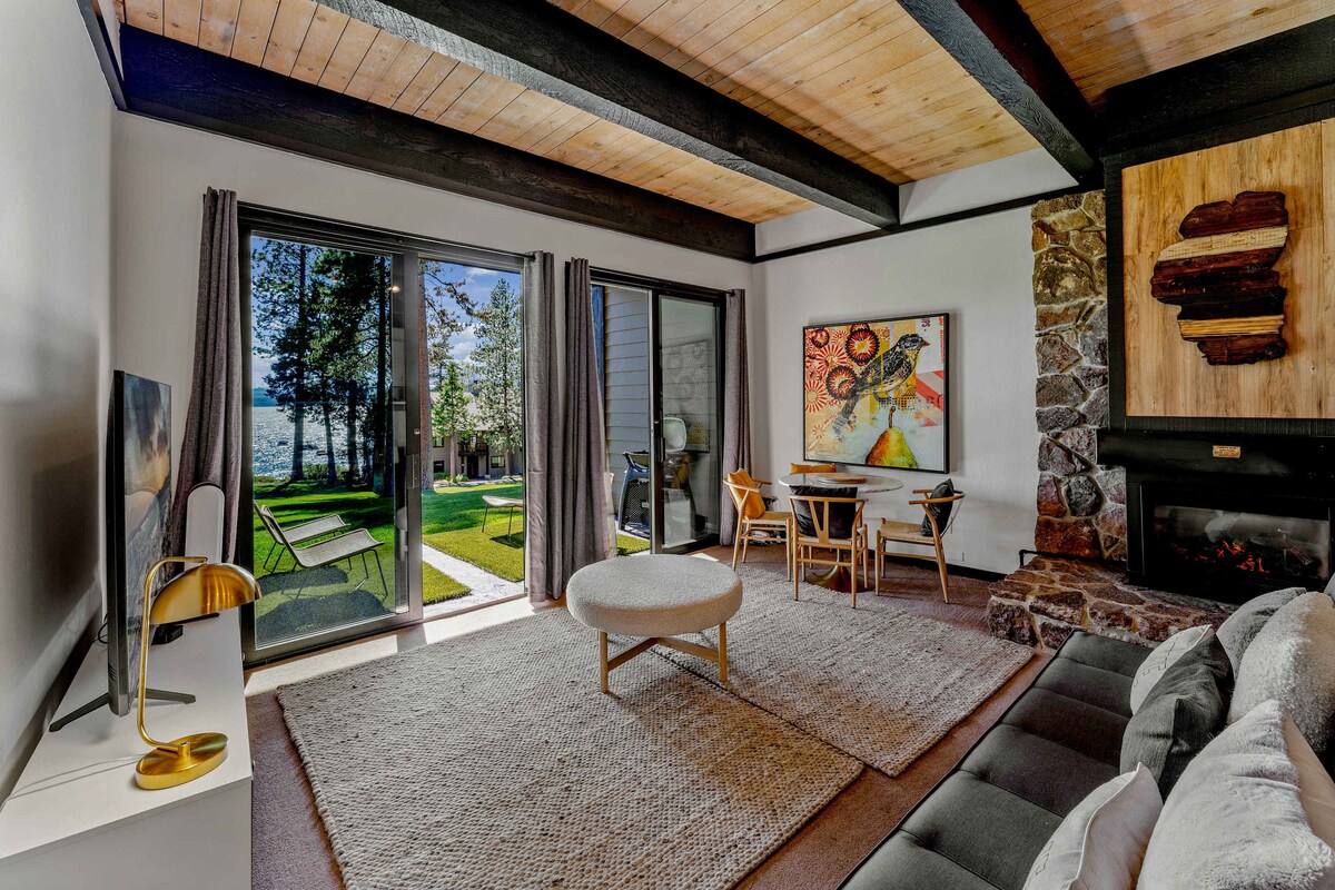 Rustikalno romantično lastniško stanovanje ob jezeru Tahoe s plažo