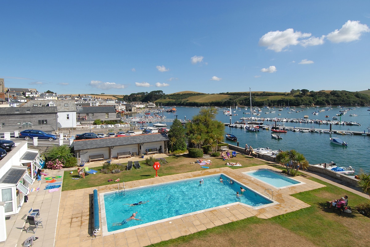 WATERSIDE Studio Apartment with large balcony on third floor overlooking private gardens and heated swimming pool (open end May to end September) with uninterrupted STUNNING views of Salcombe estuary - this is undoubtedly the most popular location in this small resort. Private car park and use of private mooring (Summer - up to 15 ft) Perfect location. The building has undergone refurbishment Winter 2018.