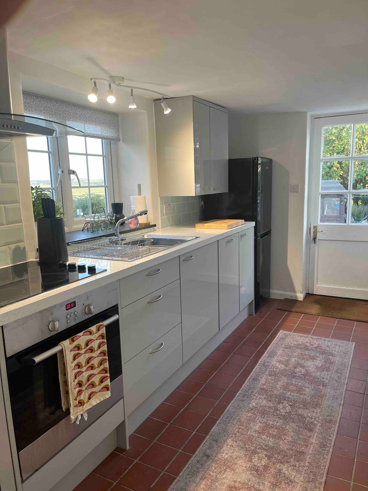 The apartment at Panorama is quiet, spacious and light overlooking the river from the ridge. Only 10 minute's drive from Barnstaple and 20 from Ilfracombe, with beaches at Saunton, Croyde and Putsborough, too. The apartment is a mile from the Tarka Trail (the most popular cycle route in the country). It is set in lovely grounds with a private balcony and a comfortable living area (sofa, armchairs and a large TV). The kitchen and dining area has an oven, hob, fridge and dishwasher.
