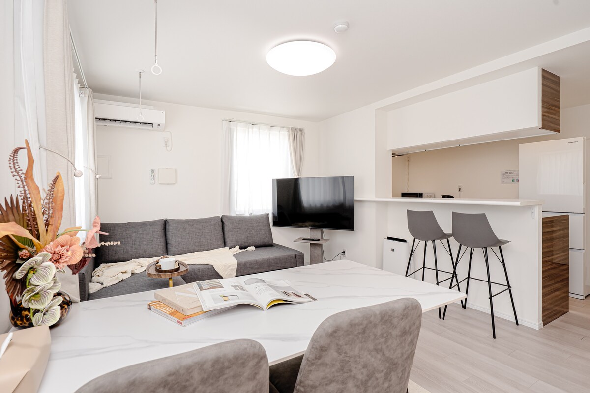 A fully renovated 1K apartment with a modern Japanese design, completed in February 2025. Spacious at approximately 50㎡ and accommodating up to 8 guests, it’s perfect for families and group trips. The cozy interior harmonizes a traditional tatami space with stylish lighting for a relaxing atmosphere.