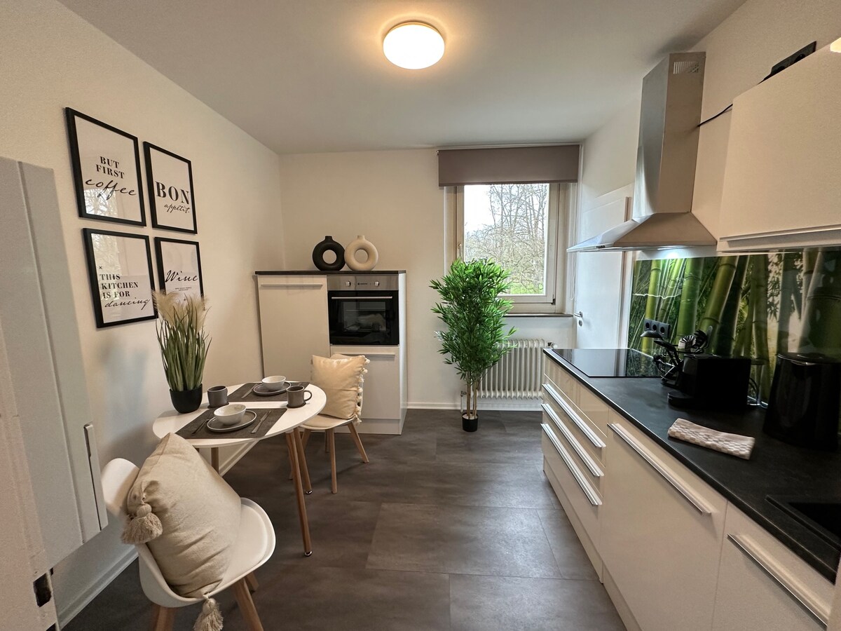 Stanovanje s približno 55 m2 se nahaja v prvem nadstropju z ločenim vhodom. Opremljen je s prho, škatlasto vzmetno posteljo 180 x 200 m, televizorjem z ravnim zaslonom, velikim raztegljivim kavčem za dva otroka ali 1 odraslo osebo, ki ni primeren za 4 odrasle, električno senco za zatemnitev in hitrim brezplačnim Wi-Fi-jem. Popolnoma opremljena majhna kuhinja z vsemi potrebnimi pripomočki, vključno z jedilnico za 4 osebe. Elegantno pohištvo in barvna shema vas vabijo, da se sprostite in sprostite.