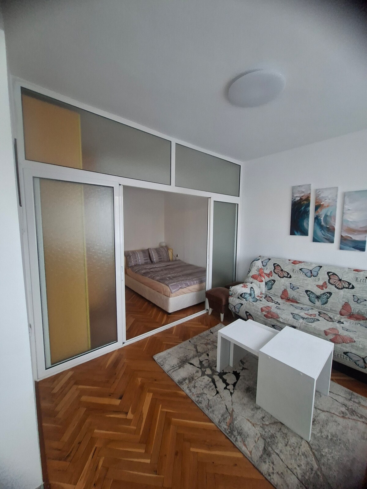 Predstavljamo studio Water Lilies Studio, ki se nahaja na osrednjem mestu za Staro Zagora Blvd. »Tsar Simeon the Great«. Do središča mesta in vseh znamenitosti se lahko sprehodite. Na razdalji 2 min je postaja javnega prevoza z več linijami, ki so povezane z vsemi kotički Stare Zagore. Garsonjera je majhna in kompaktna, vendar smo se po najboljših močeh potrudili, da vam ne bi kaj manjkalo, kar je pomembno za vašo udobje. Parkiranje je na voljo v bližini stavbe, kljub osrednji lokaciji.